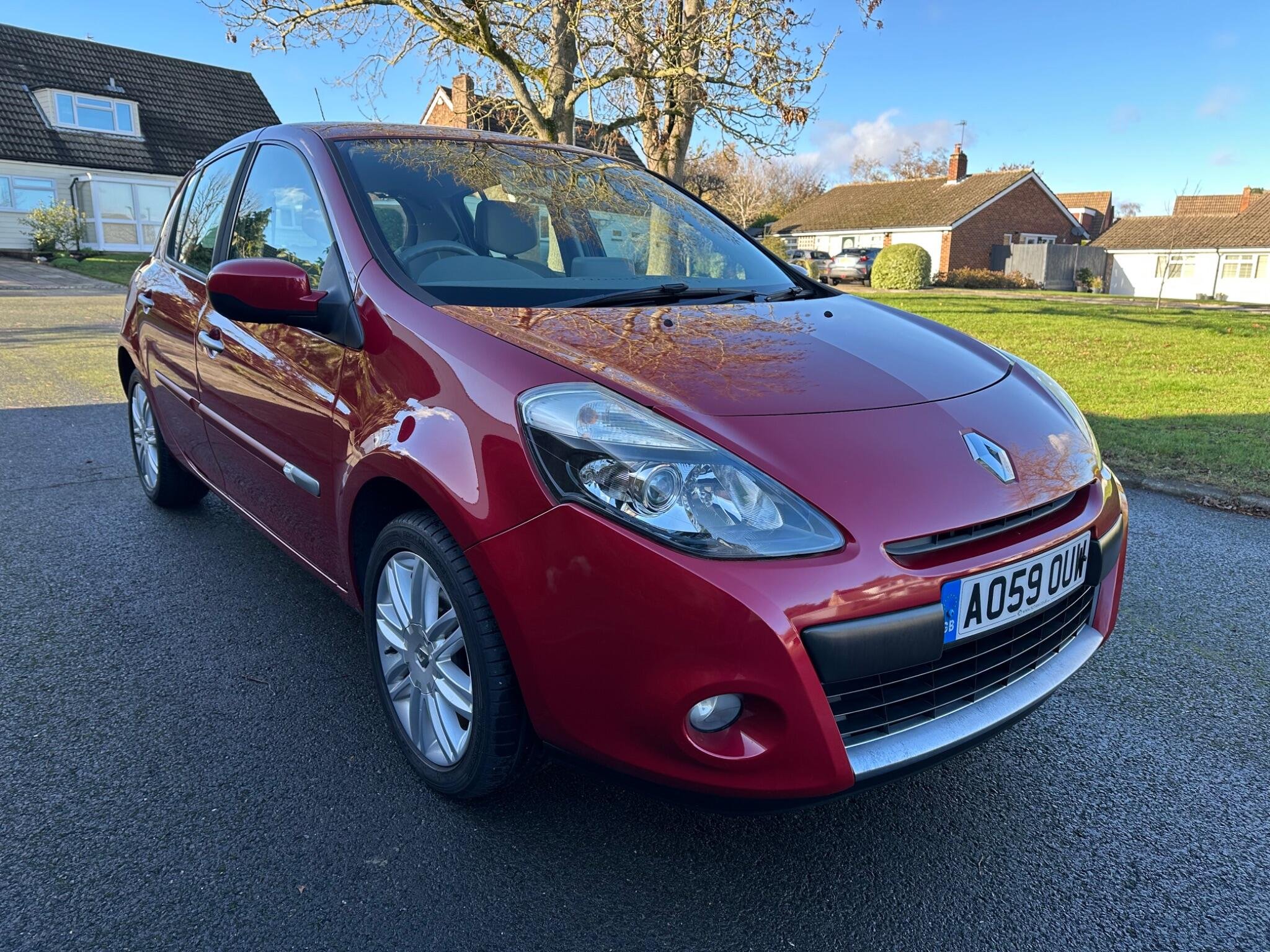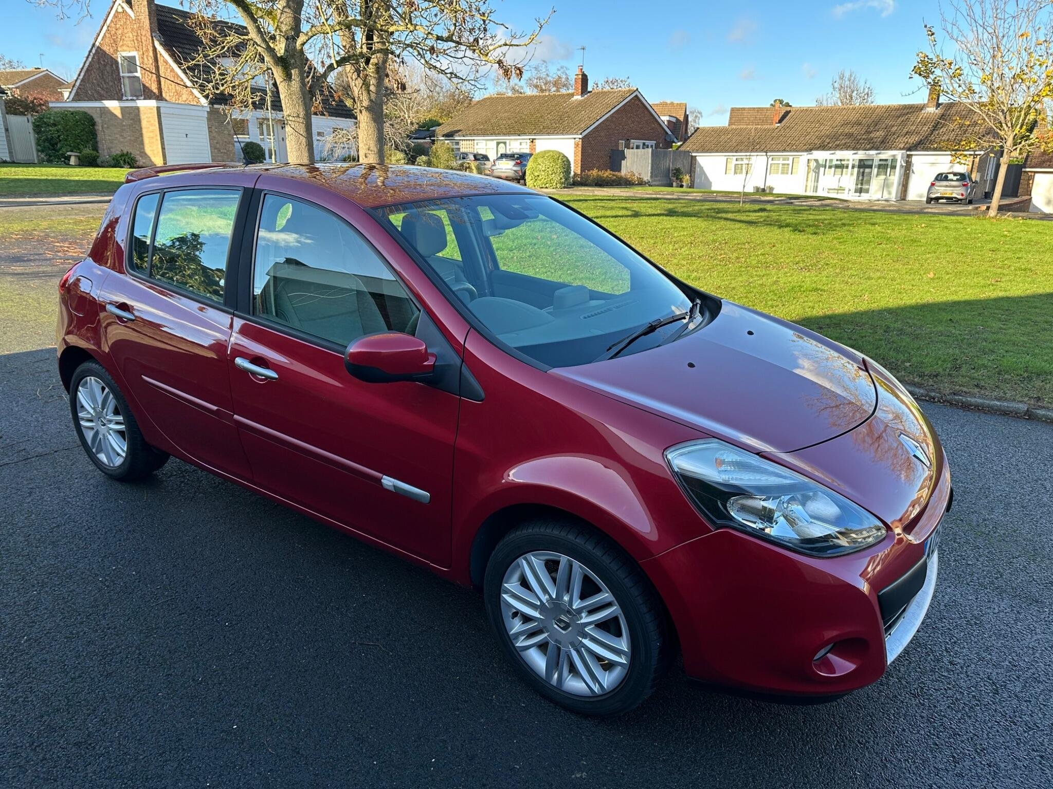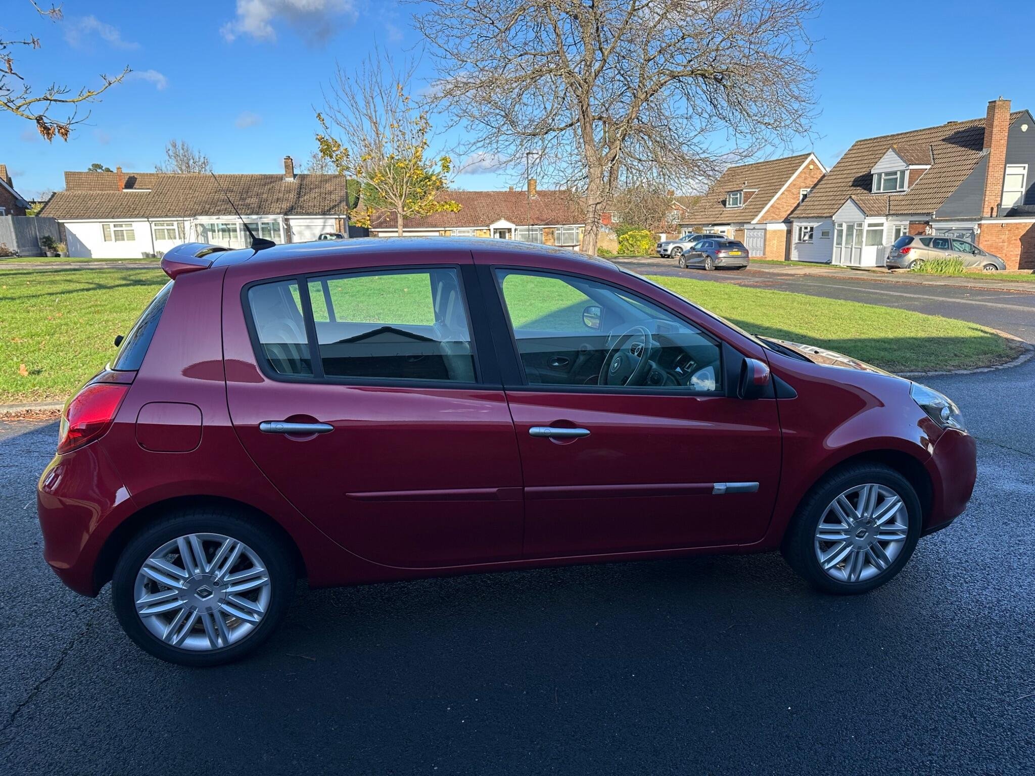 Finished in metallic burgundy with grey leather, service history, alloys, air conditioning, electric windows/mirrors, satellite navigation , cup holders, very low mileage Ulez compliant , top of the range Clio! Comprehensive warranties available . Please call for new address.